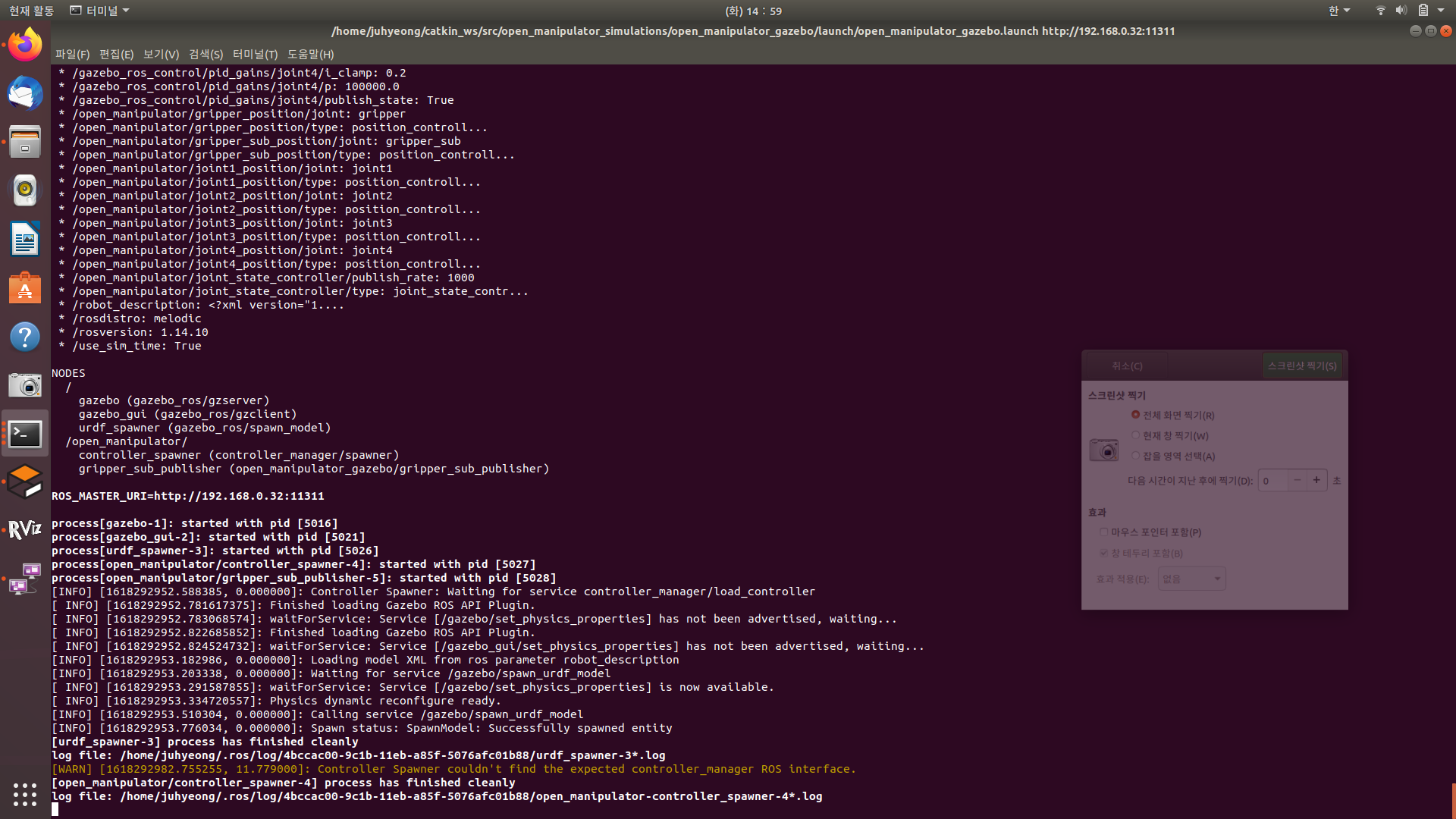 --> 가제보 터미널에서 Controller Spawner couldn't find the expected controller_manager ROS interface.에러 발생, 무브잇에서의 움직임 반영하지 못함