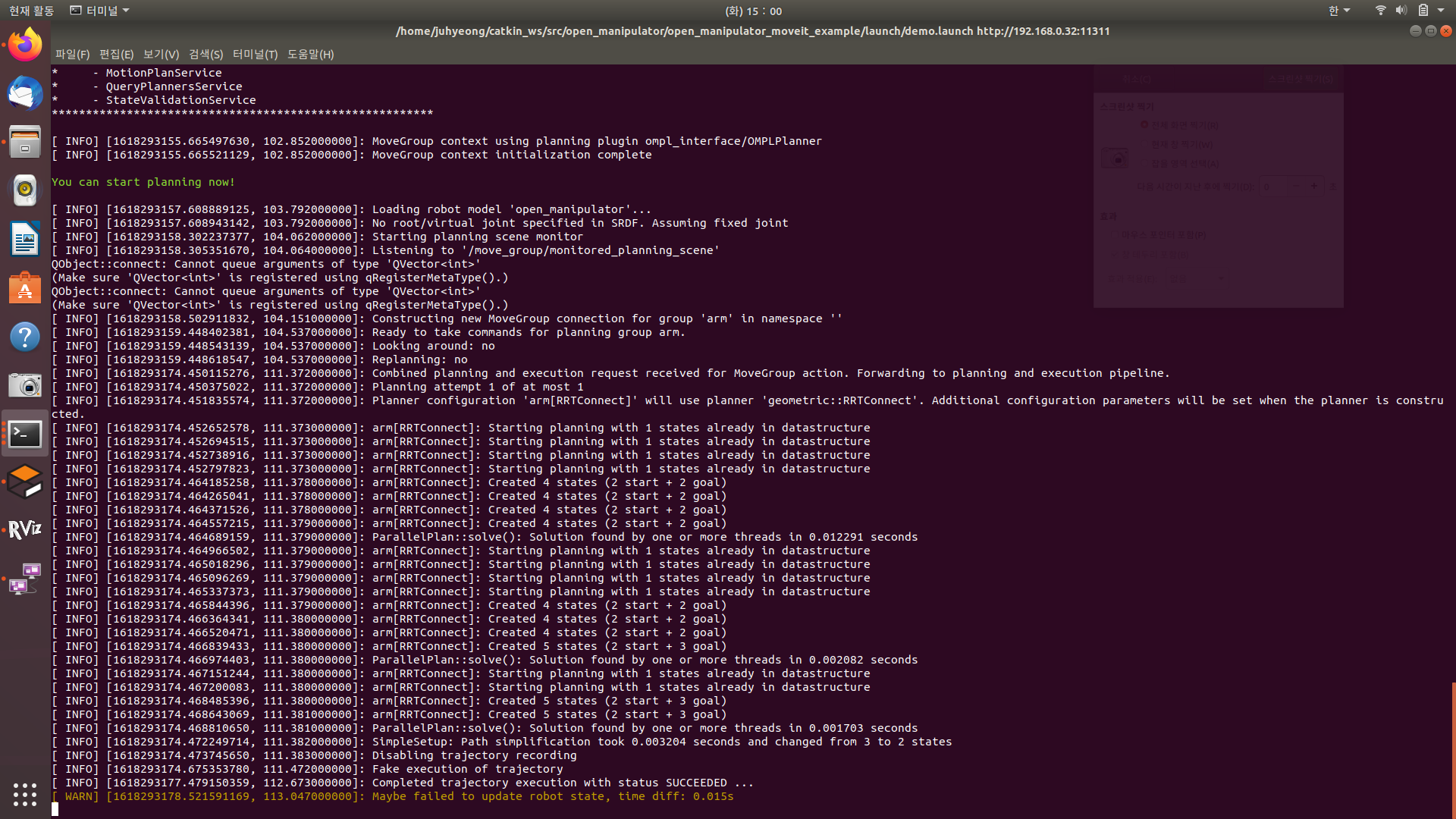 오픈매니퓰레이터 moveit으로 실물구동 제어방법