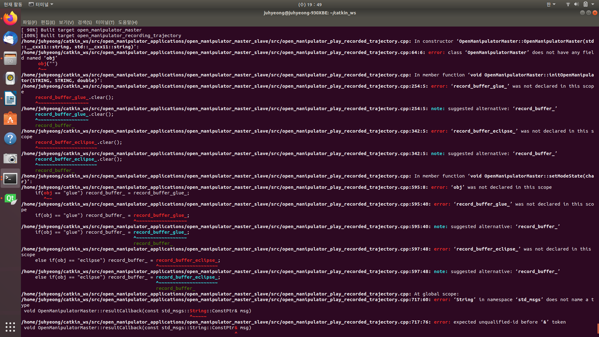 이후 catkin_make를 실행하니 오류가 발생한다.