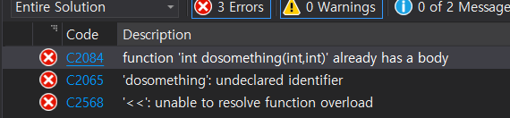 위 코드를 실행하면 같은 이름, 다른 내용의 함수가 있어 에러가 난다. 'already has a body'