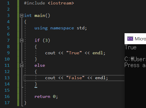 cout << (true && true) << endl;