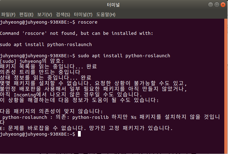 2주만에 roscore을 실행하자 아래의 오류가 떴다.