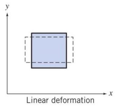 선형변형은 위 그림과 같이 가로축으로 인장 압축 또는 세로축으로 인장 압축이 일어나는 경우이다.