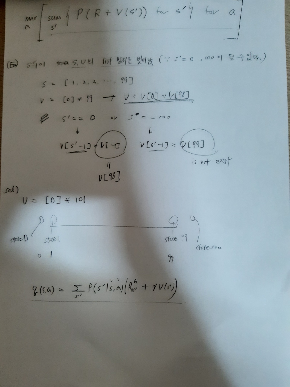 # s'은 0 또는 100이 될 수 있다. v(s')을 계산해야 하는데 v(0)과 v(100)은 어떻게 둬야 할까?