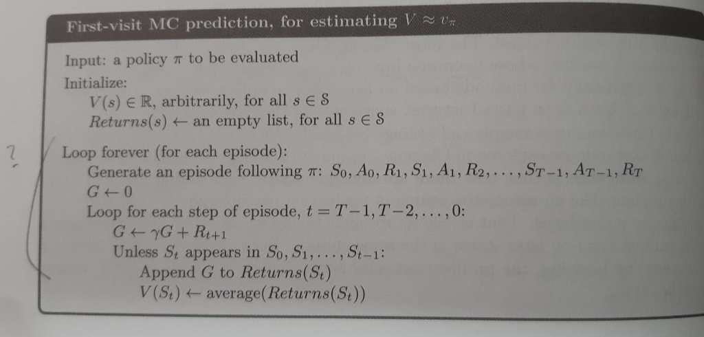 코드진행이 뭔가 독특했다. 각 Episode에서 t를 거꾸로 진행하는 것이 독특했는데 손으로 코드진행을 가상으로 해보니 결과적으로 처음으로 방문된 State에 대해서만 Returun값을 G에 대입시킬 수 있었다.