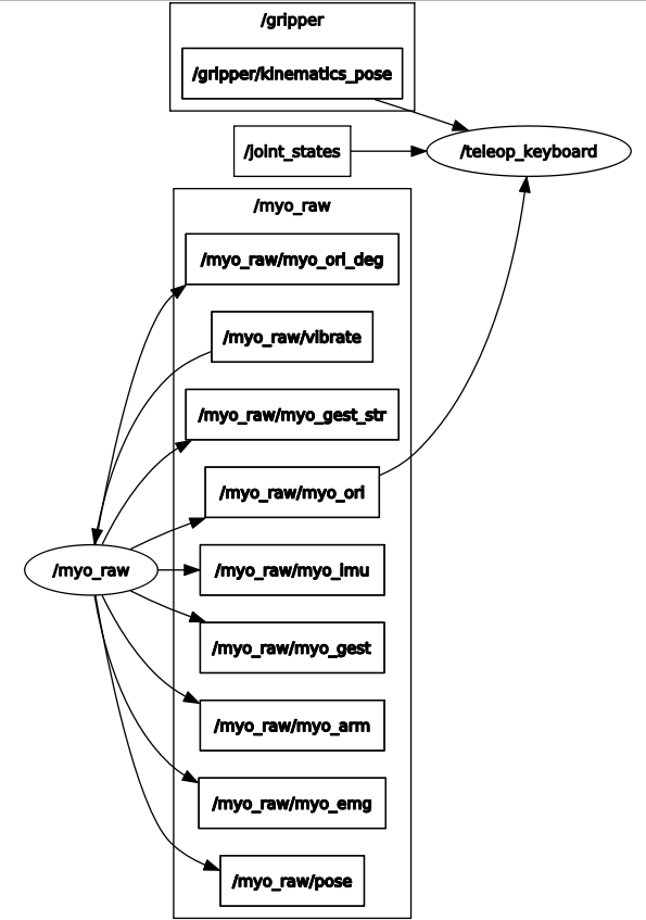 /myo_raw에서 /teleop_keyboard로 /myo_raw/myo_ori 토픽을 통해 연결된 것을 확인할 수 있다.