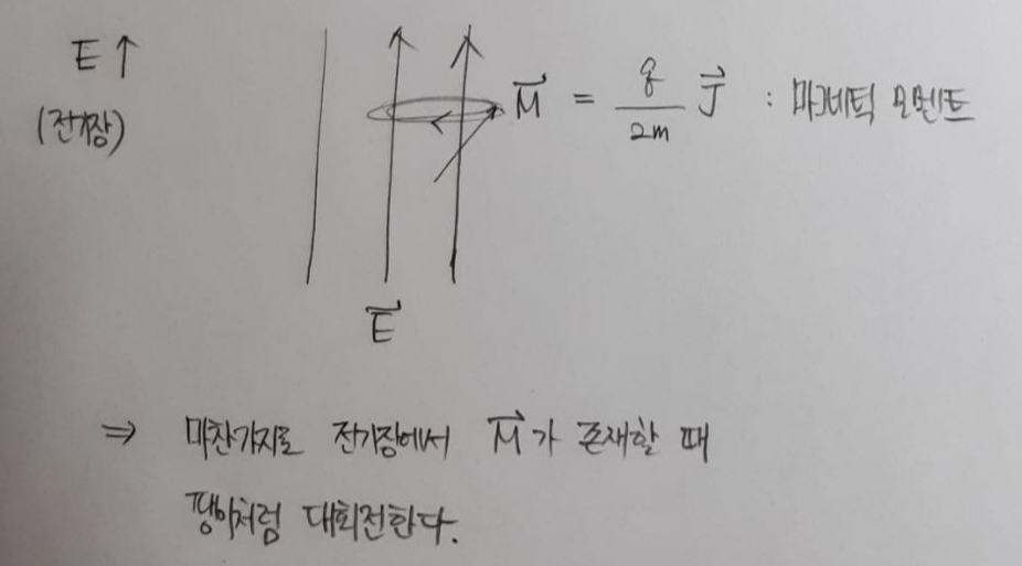 마치 팽이의 각운동량처럼 자기모멘트가 전기장안에 있다.