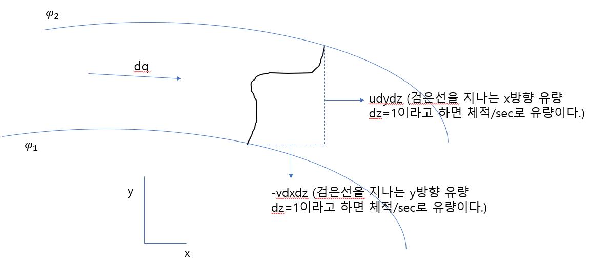 따라서 dq는 차이가 작은 유동함수 사이를 지나는 유량으로