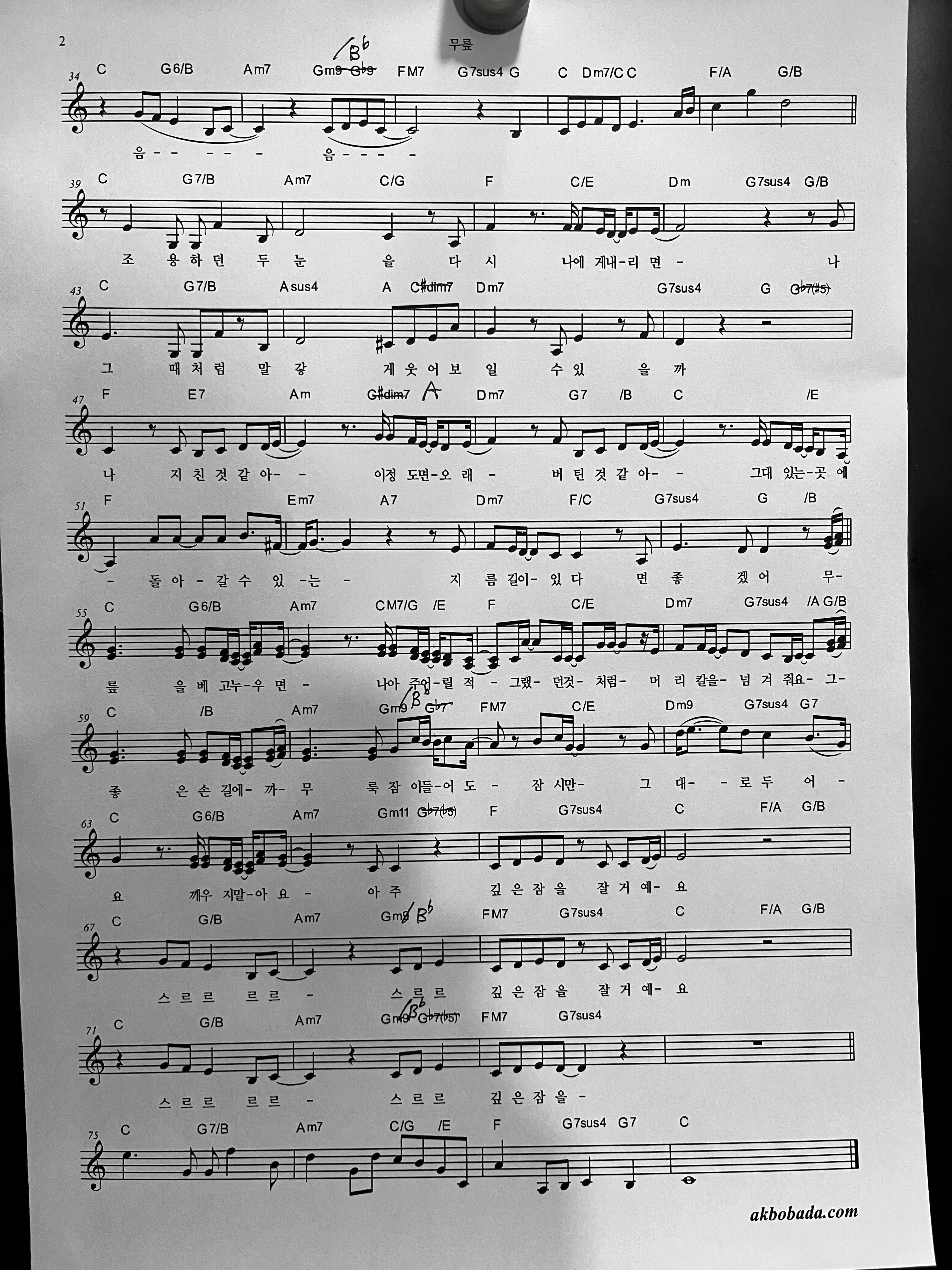 흔들리는 노래는 첫 줄 박자가 매우 어렵다.