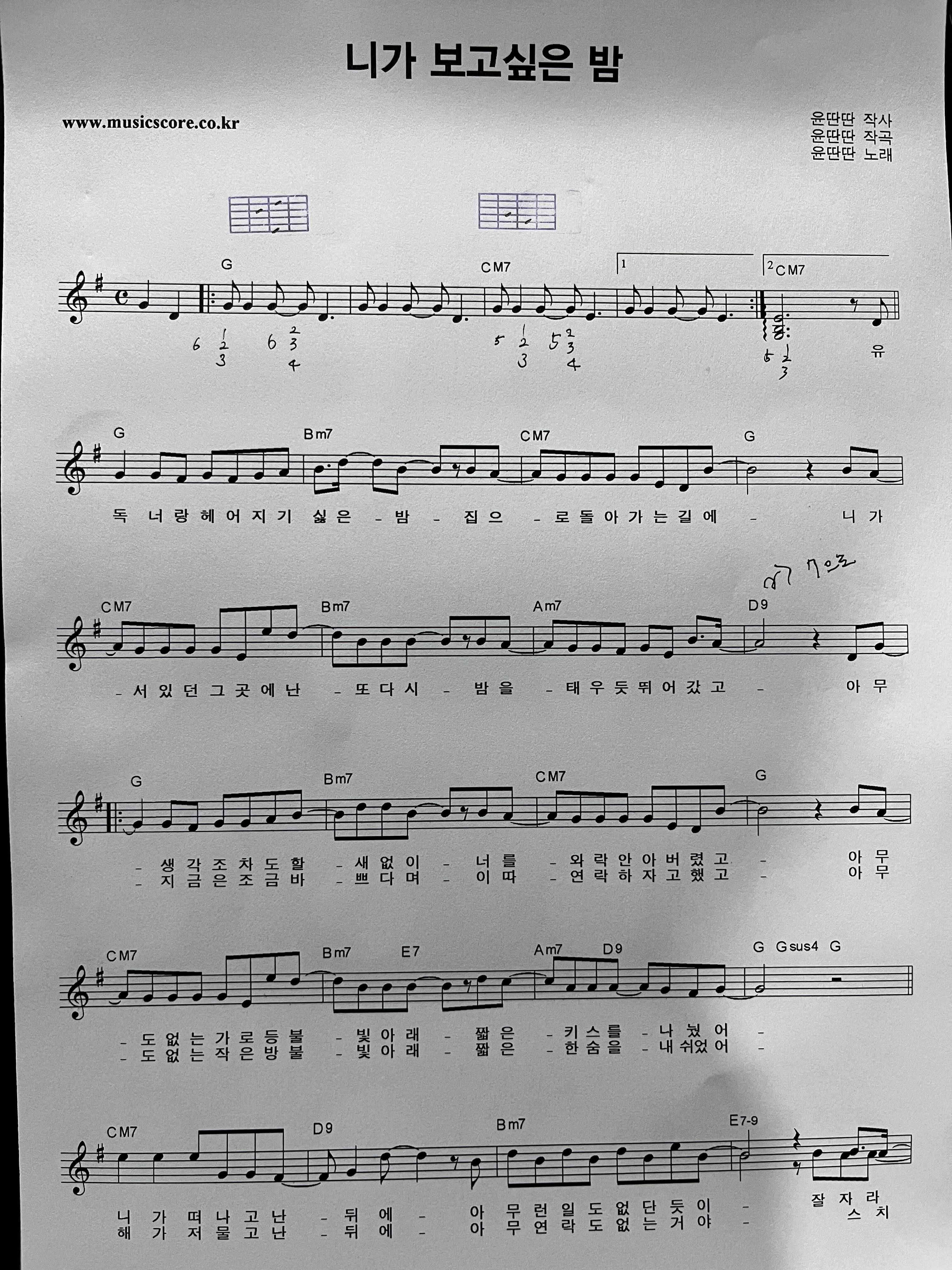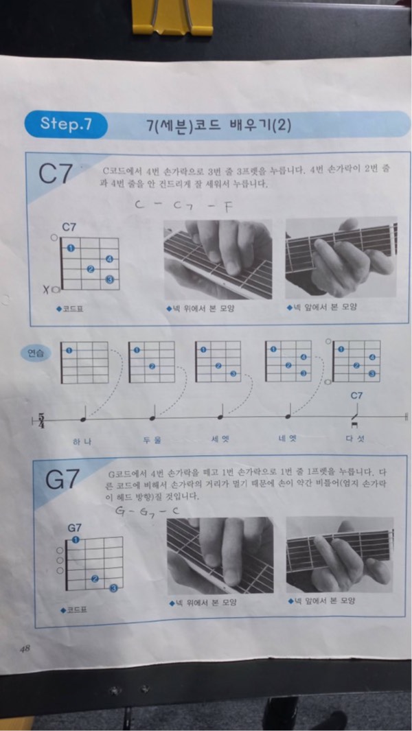 D7코드와 D코드 헷갈리지 않게 주의하자.