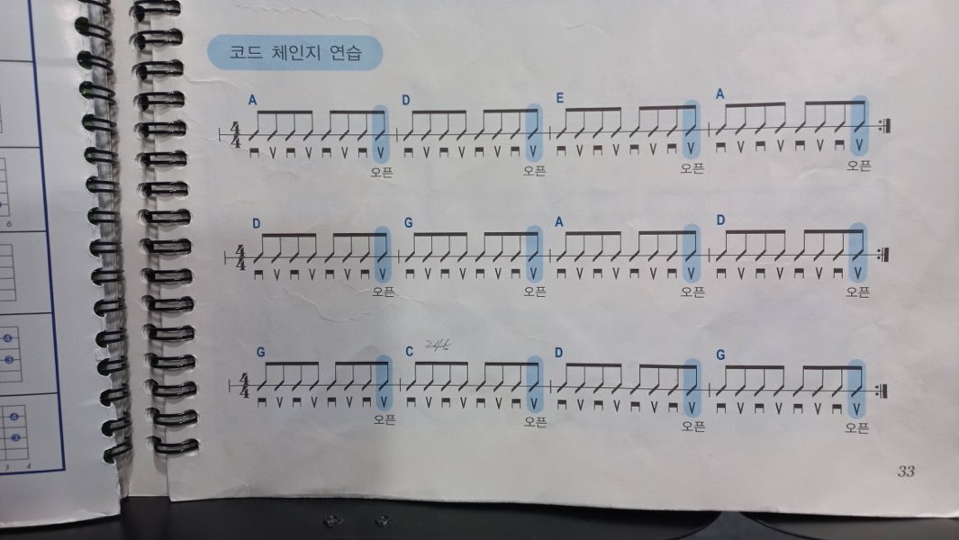 핵심 : 코드 이동할 때 마지막을 개방현으로 가거나 빠르게 근음으로 이동해 소리가 허술해보이지 않도록 기본 실력을 만들자.