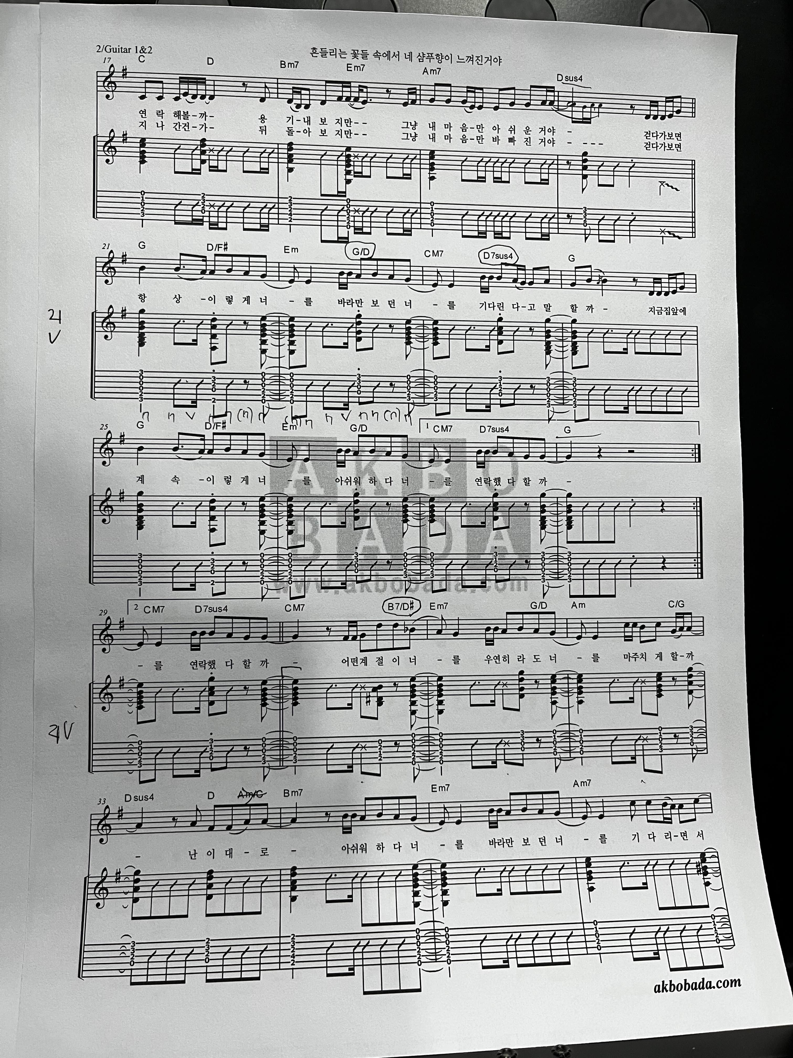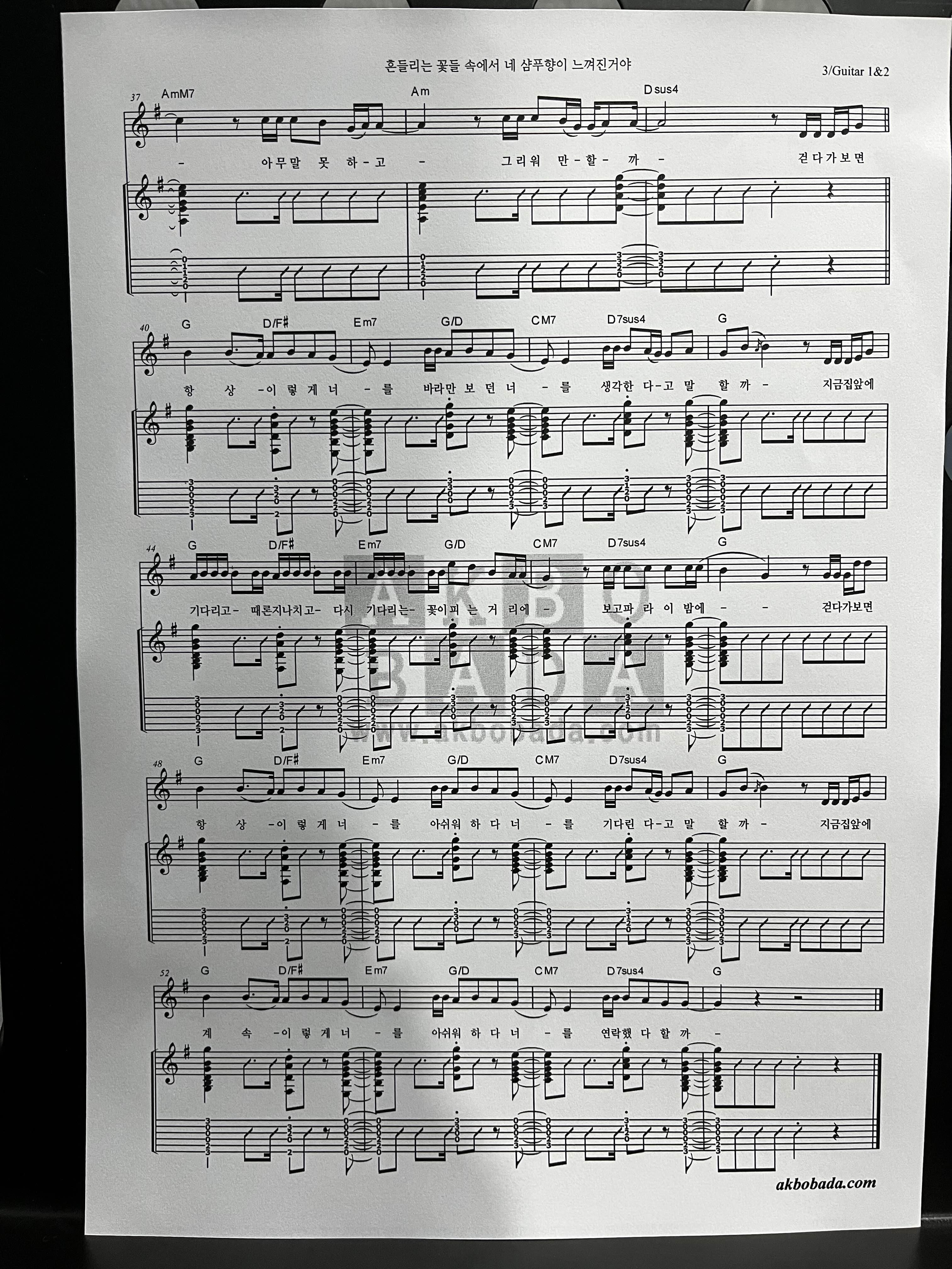 G코드(D코드의 변형 운지)에서 약지를 붙였다 뗏다를 하며 멜로디가 느껴지도록 했다
