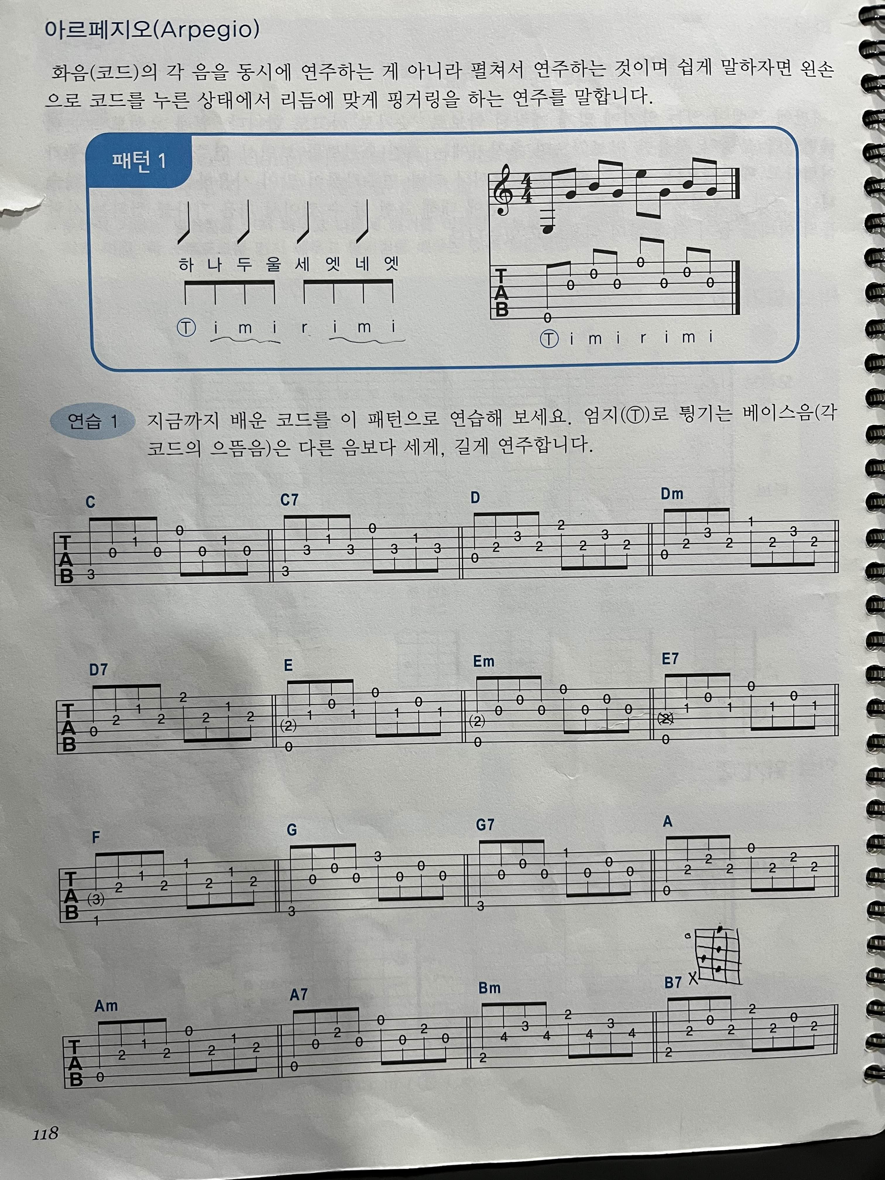 여기에 M,m,m7,7코드로 변형이 가능하며 그럼 대부분의 코드를 연주할 수 있다!