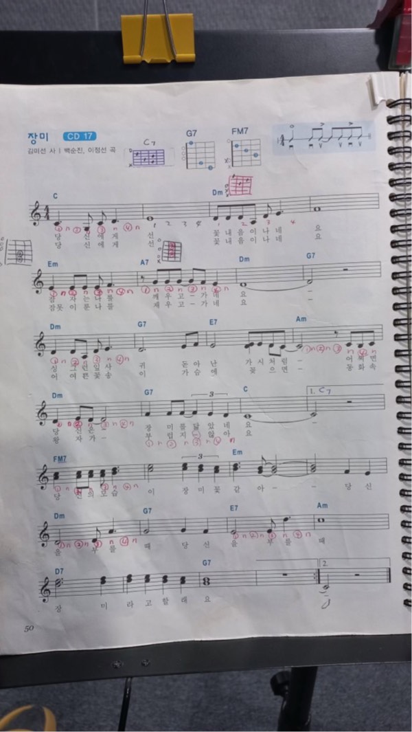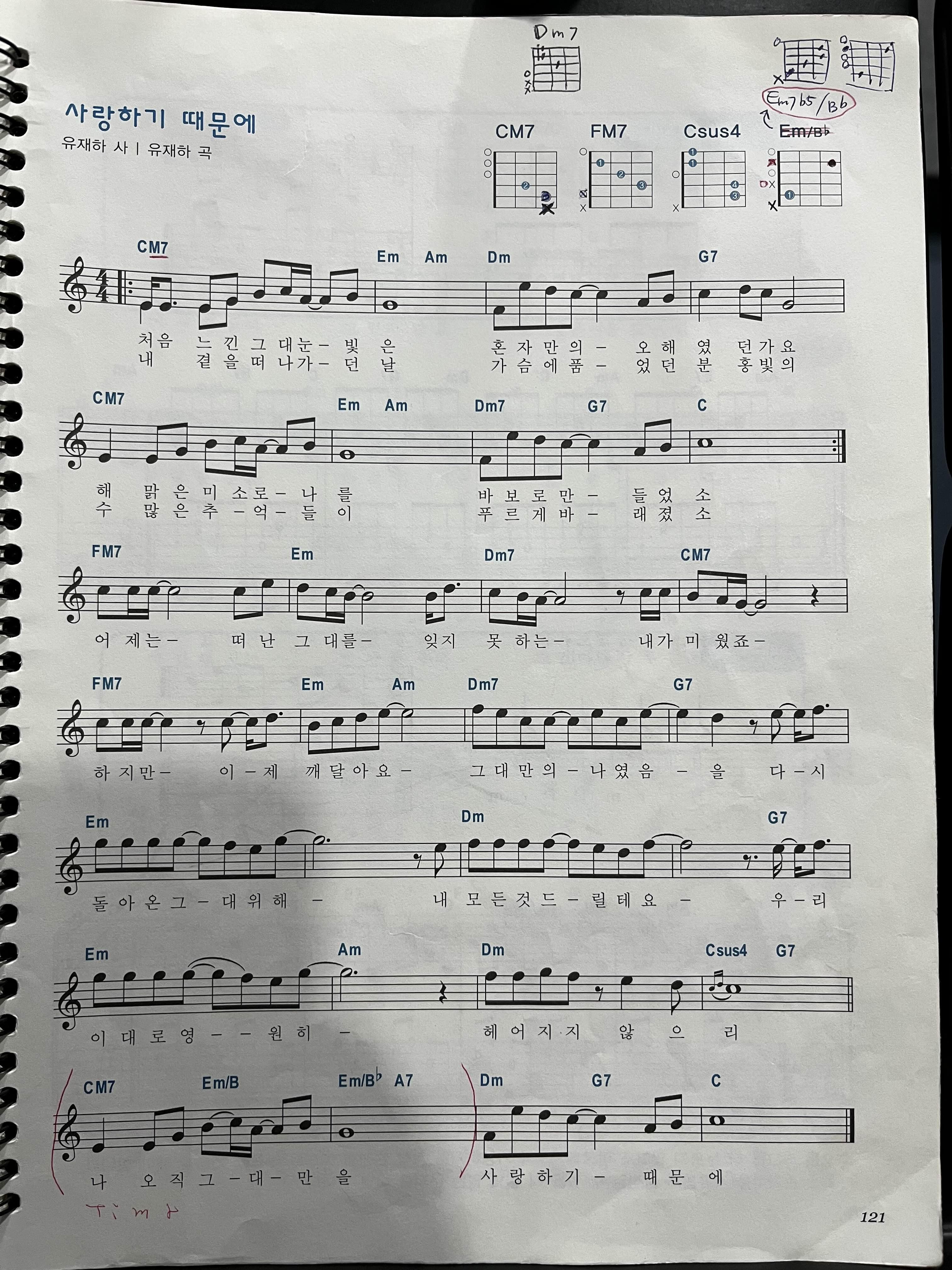 다음시간에는 Cm7 하이코드를 배우기로 했다. 그 원리도 함께.