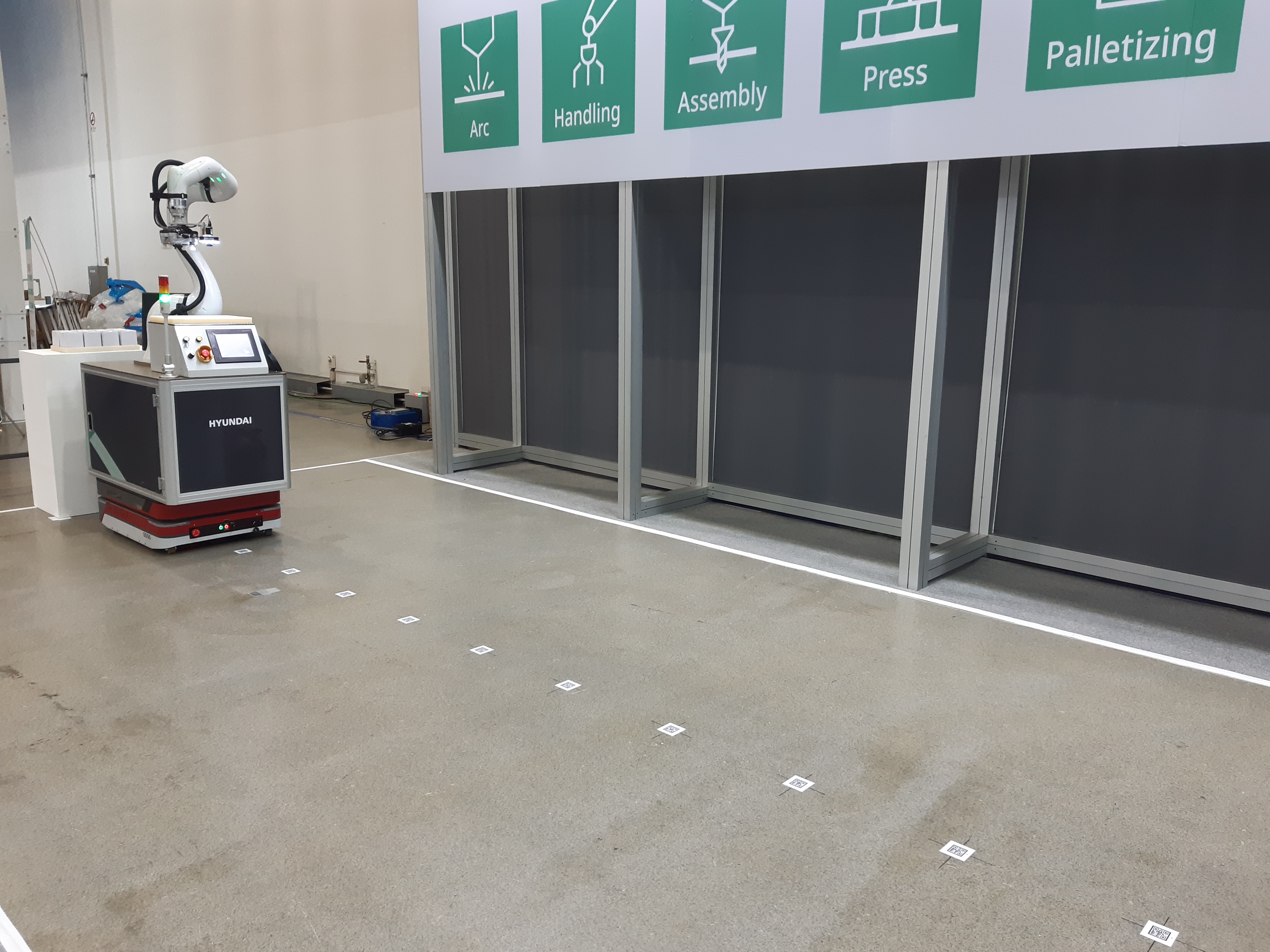 원래는 아래 사진처럼 바닥에 QR코드를 부착해 정확한 이동을 구현했는데 말이죠! 앞으로 QR코드 부착 없이 이동하는 것으로 바뀔 것이라고 합니다.