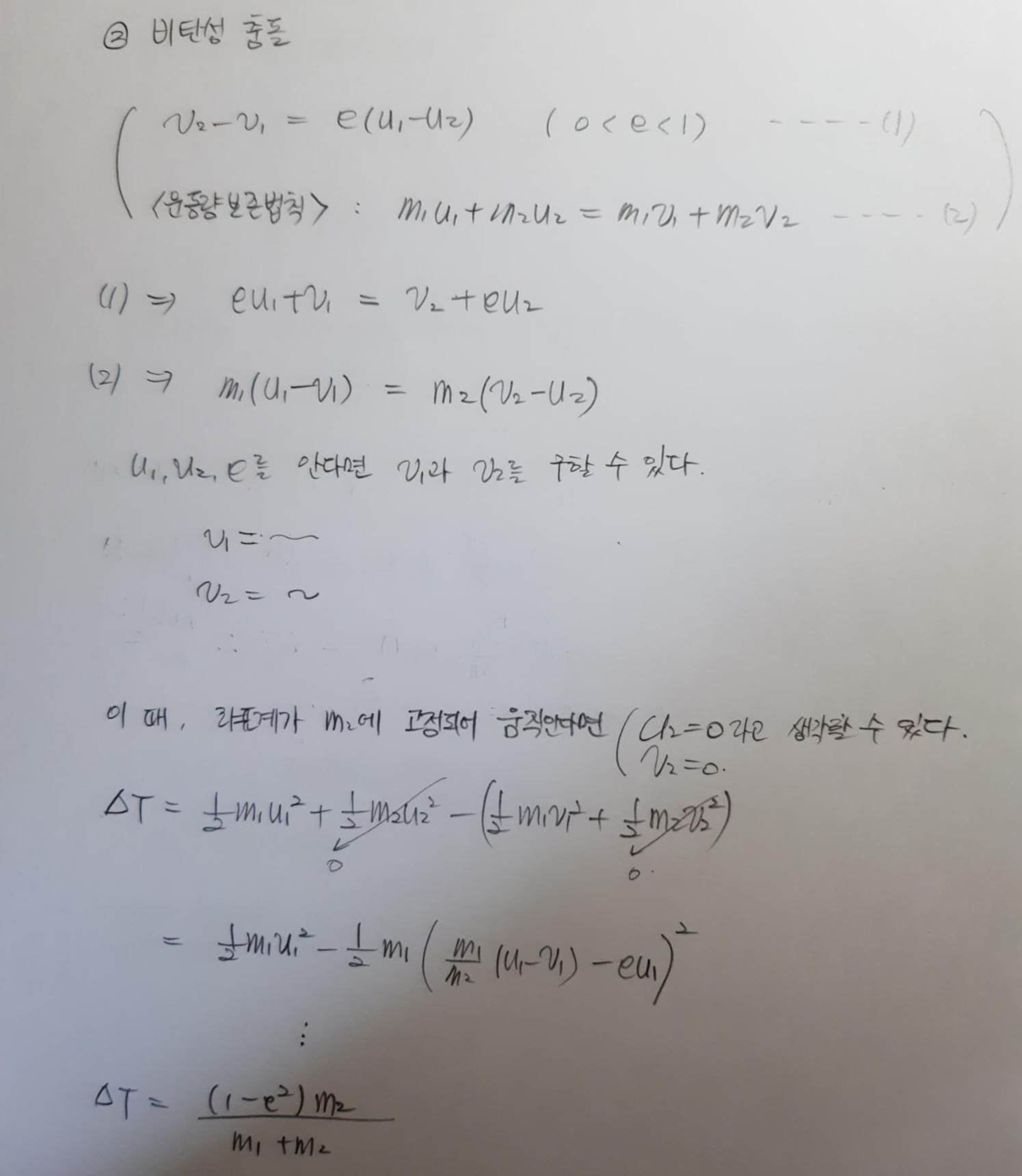 u2 : m2의 초기속도 v2 : m2의 충돌 후 속도