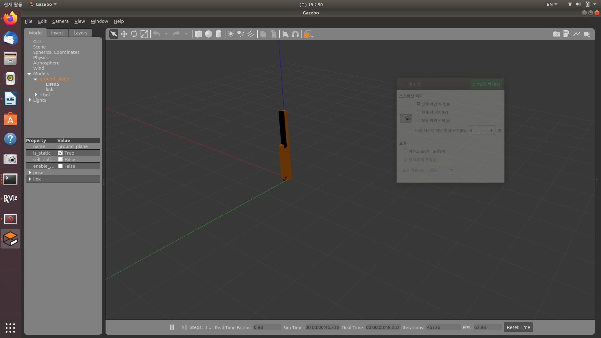 참고 글에서도 모델이 안정상태로 수렴한다고 한다. 앞으로 뭔가를 더 익혀 URDF파일을 수정해야한다고 한다.