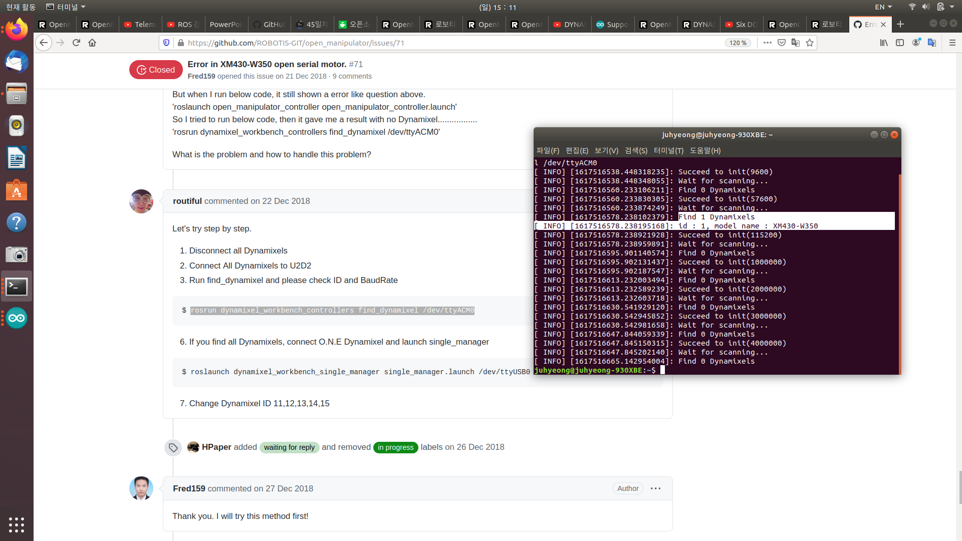 Error in XM430-W350 open serial motor. · Issue #71 · ROBOTIS-GIT/open_manipulator